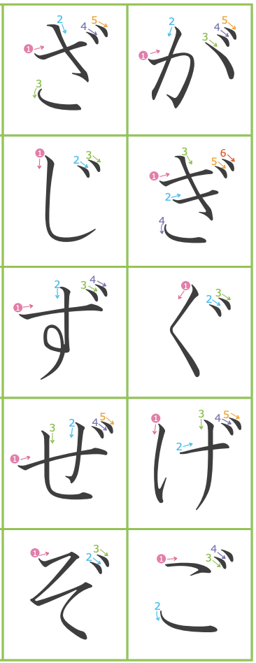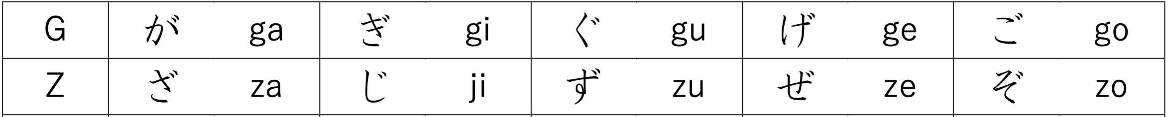 ざ za じ ji ず zu ぜ ze ぞ zo